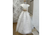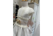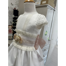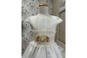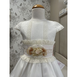 VESTIDO clásico de organdí en color crudo con lorzas y bodoques.