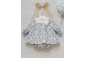 CONJUNTO de jesusito con braguita en color azul empolvado combinado con tela estampado ovejitas.