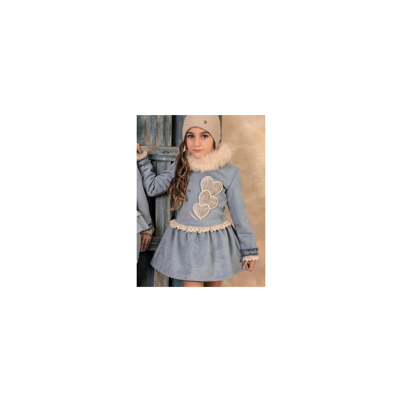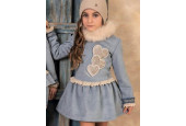 Vestido antelina cuello redondo con aplique corazones en el delantero.