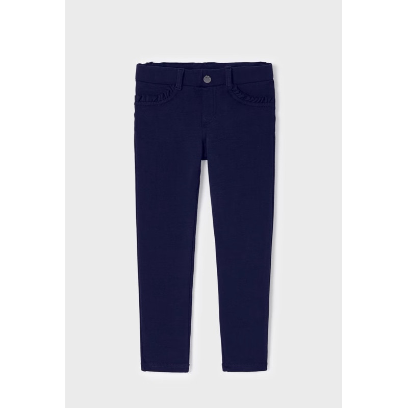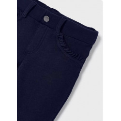 Pantalón para niñas de 3 a 9 años en un tejido muy cómodo de punto con goma en cintura para mejor ajuste y botón único a presión, color azul.