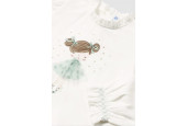 CAMISETA de manga larga color crudo y aplique muñeca en el delantero.