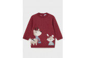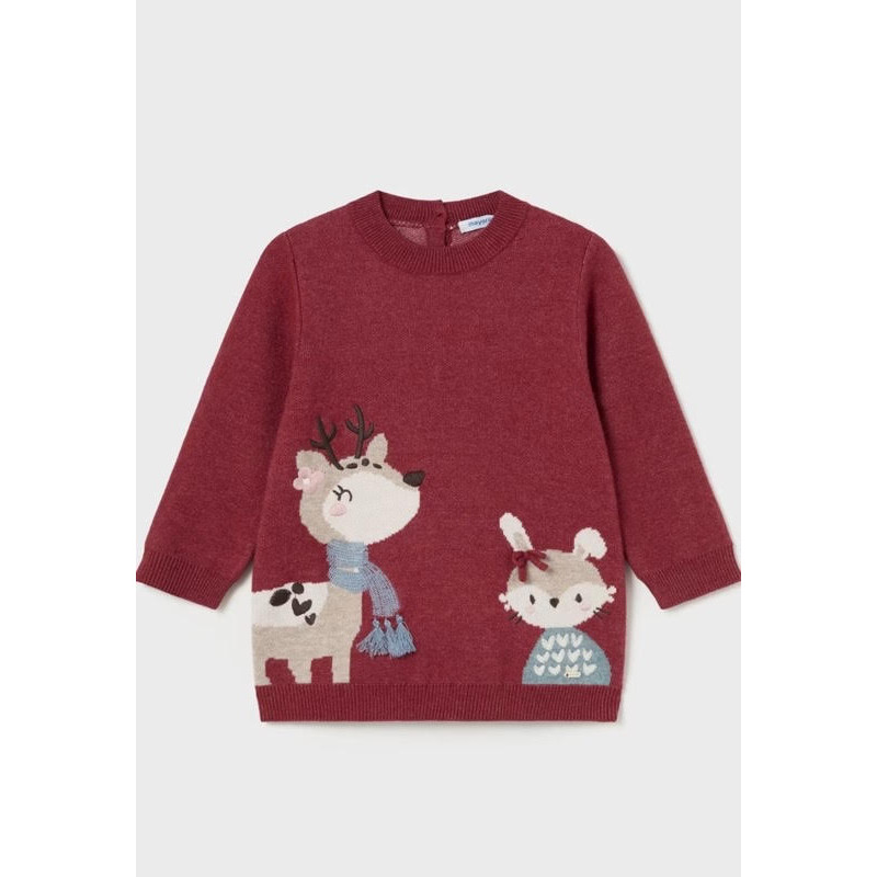 VESTIDO tricot en color granate con cuello redondo y manga larga.
