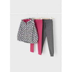 Chándal de tres piezas para niña compuesto por una sudadera y dos pantalones largos deportivos.