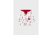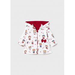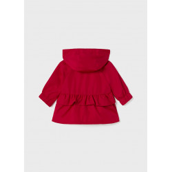 Chaqueta reversible con capucha desmontable en color rojo. Lleva volante decorativo en la cintura.