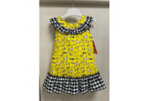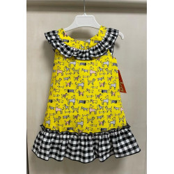 Vestido sin mangas y cuello redondo de corte trapecio y rematado el bajo en vichy blanco y negro.
