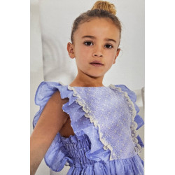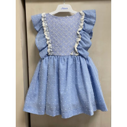 Vestido infantil confeccionado en plumeti azul.