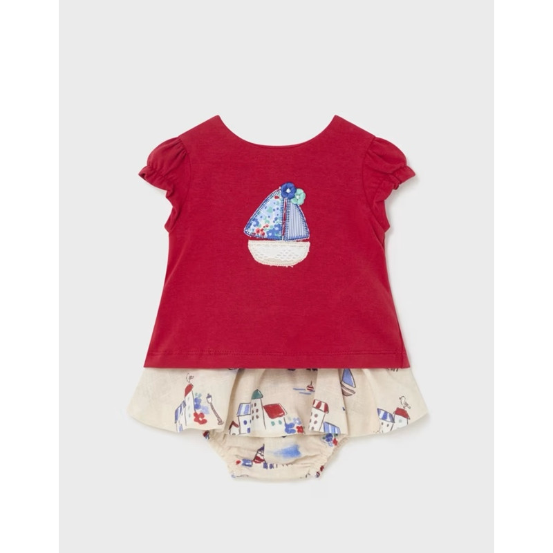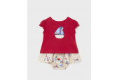 CONJUNTO de 2 piezas camiseta roja barquito y braguita con volante.
