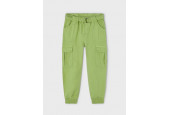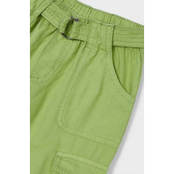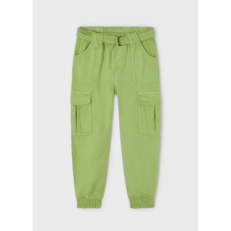 PANTALÓN largo verde manzana con bolsillos y cinturón para niña.
