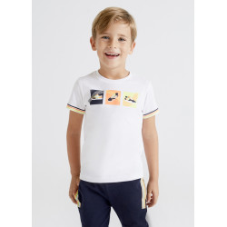 CAMISETA blanca de algodón de manga corta con serigrafía deportivas.