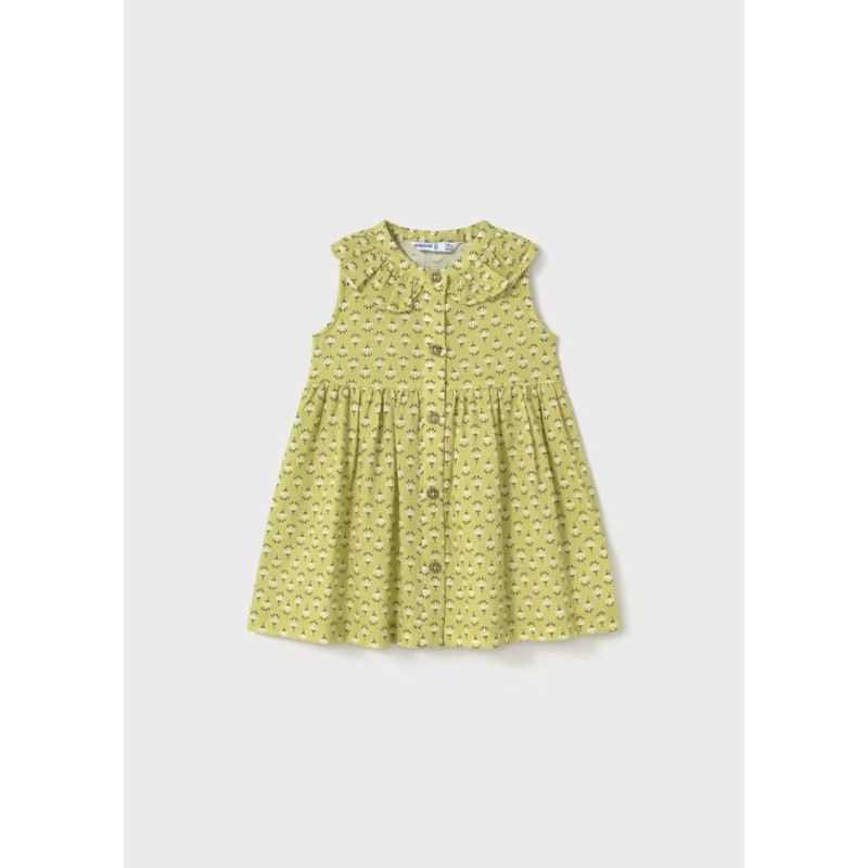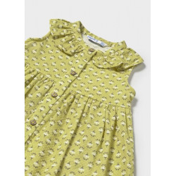 VESTIDO estampado en tonos pistacho con cuello y botones en el delantero.