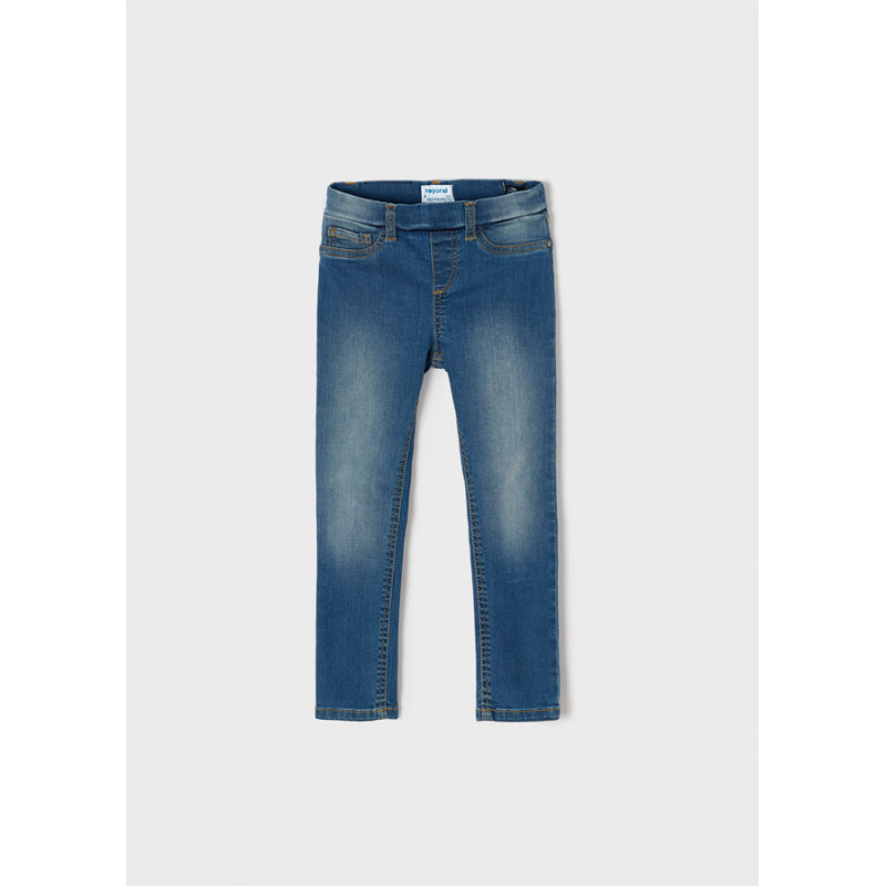 PANTALÓN tejano super skinny azul medio con cintura ajustable.