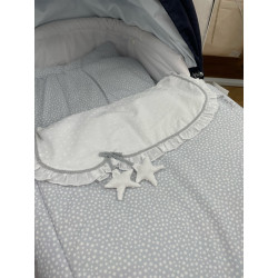 Confeccionado en tejido estampado gris con estrellitas blancas.