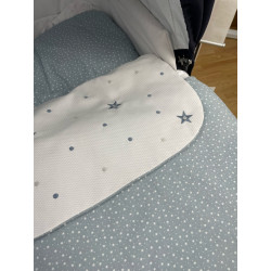 Confeccionado en piqué azul empolvado con estrellas bordadas.