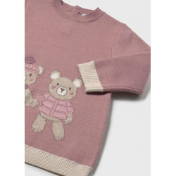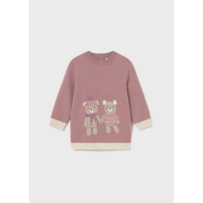 VESTIDO de manga larga para bebé con cuello redondo y cierre con botones en la espalda para facilitar la puesta de la prenda y bordados en el delantero.