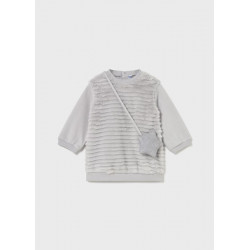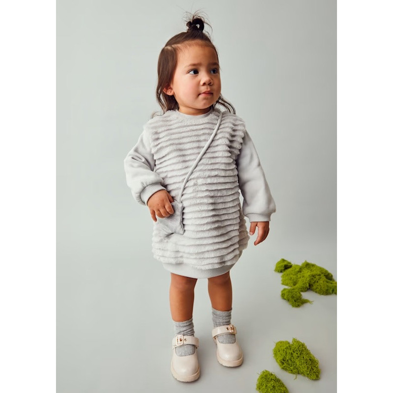 VESTIDO de manga larga con cuello redondo y cierre con botones a presión en la parte posterior. Modelo con forro interior.Lleva a juego como complemento un BOLSO para guardar sus accesorios indispensables.
