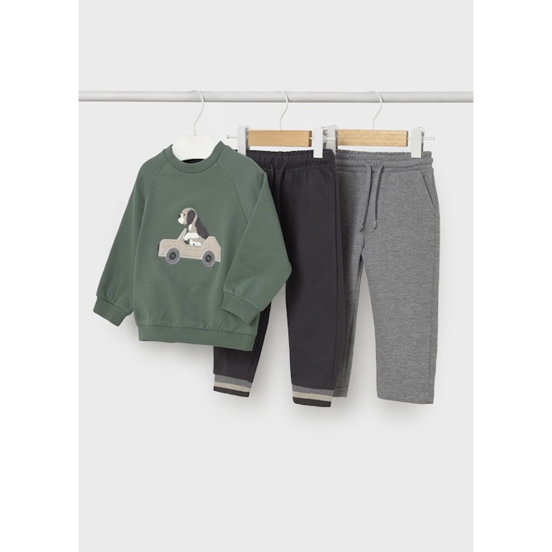 CHÁNDAL de tres piezas para bebé compuesto por una SUDADERA y dos PANTALONES largos deportivos.