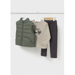 CONJUNTO 3 piezas con CHALECO acolchado, SUDADERA y PANTALÓN deportivo para bebé.