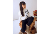 SUDADERA de manga larga y cuello redondo con motivo de lazo bordado lentejuelas.