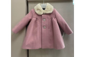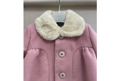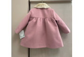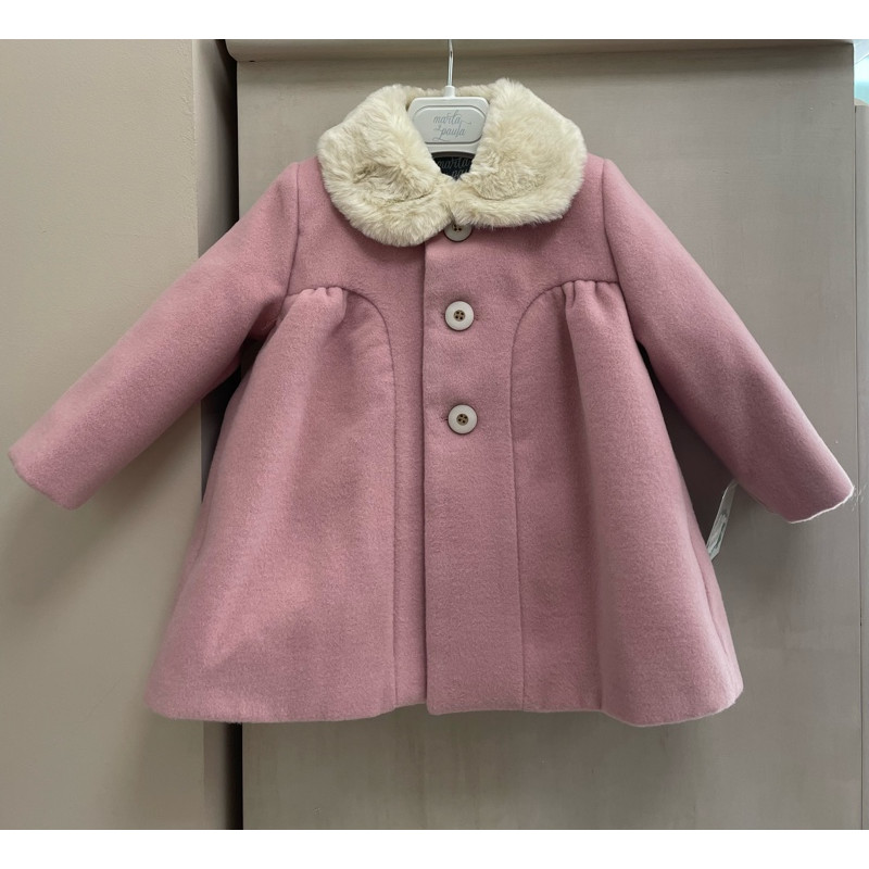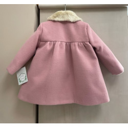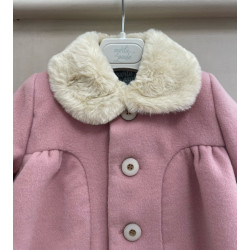 ABRIGO BEBÉ con cuello de pelo y capota a juego.