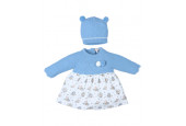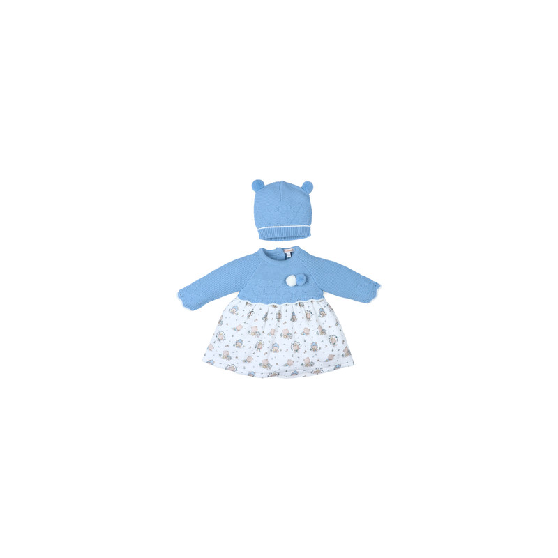 VESTIDO con cuerpo de punto y falda de tela estampada con GORRITO de punto a juego.