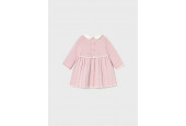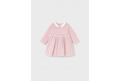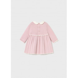 VESTIDO de punto rosa con manga larga y cuello bebé.
