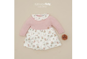 VESTIDO con cuerpo de punto y volante en el cuello. Falda estampada.