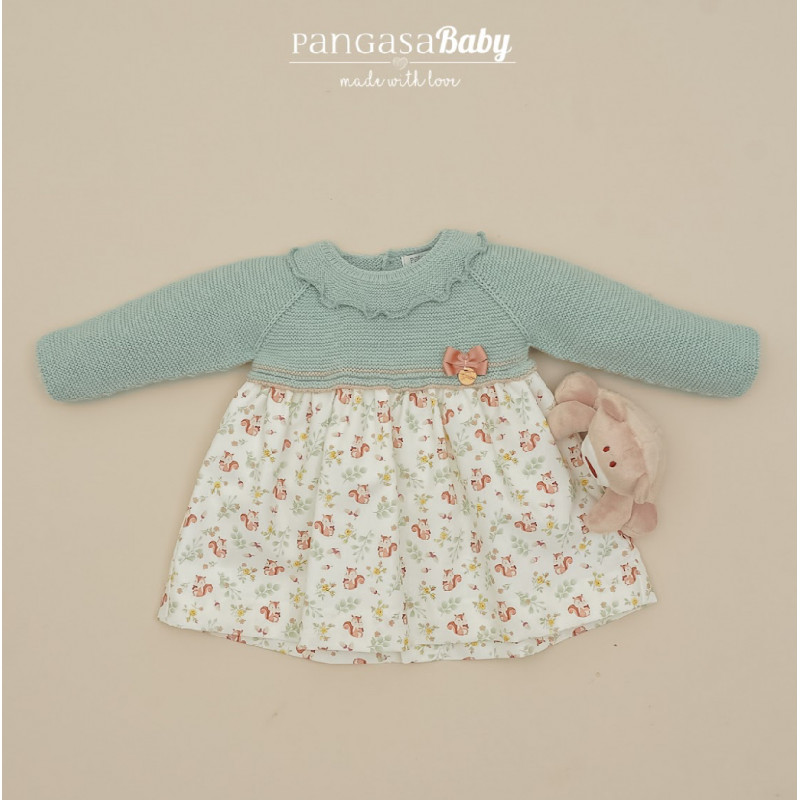 VESTIDO combinado cuerpo de punto y falda tejido estampado para bebé en tonos verde