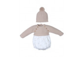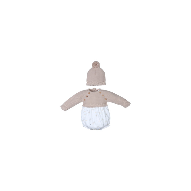 PELELE combinado con cuerpo de punto y manga larga color piedra y tela estampada.