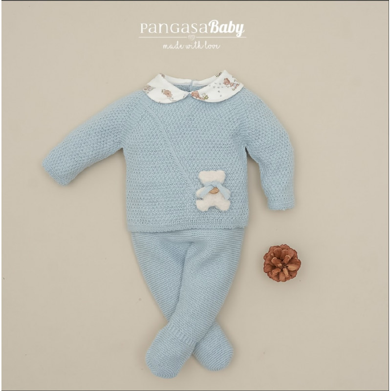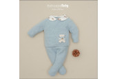 Cuello con volante y aplique osito en el delantero y polaina a juego.