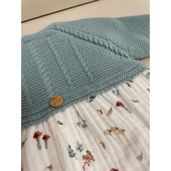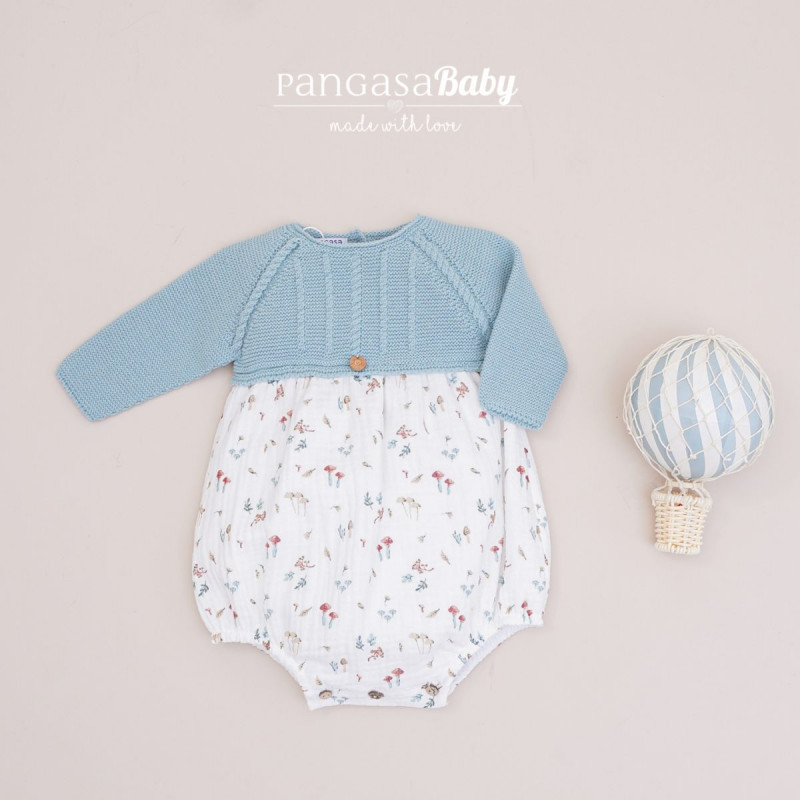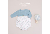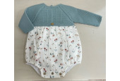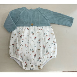 Pelele con cuerpo de punto en color verde mar combinado con bambula setas.